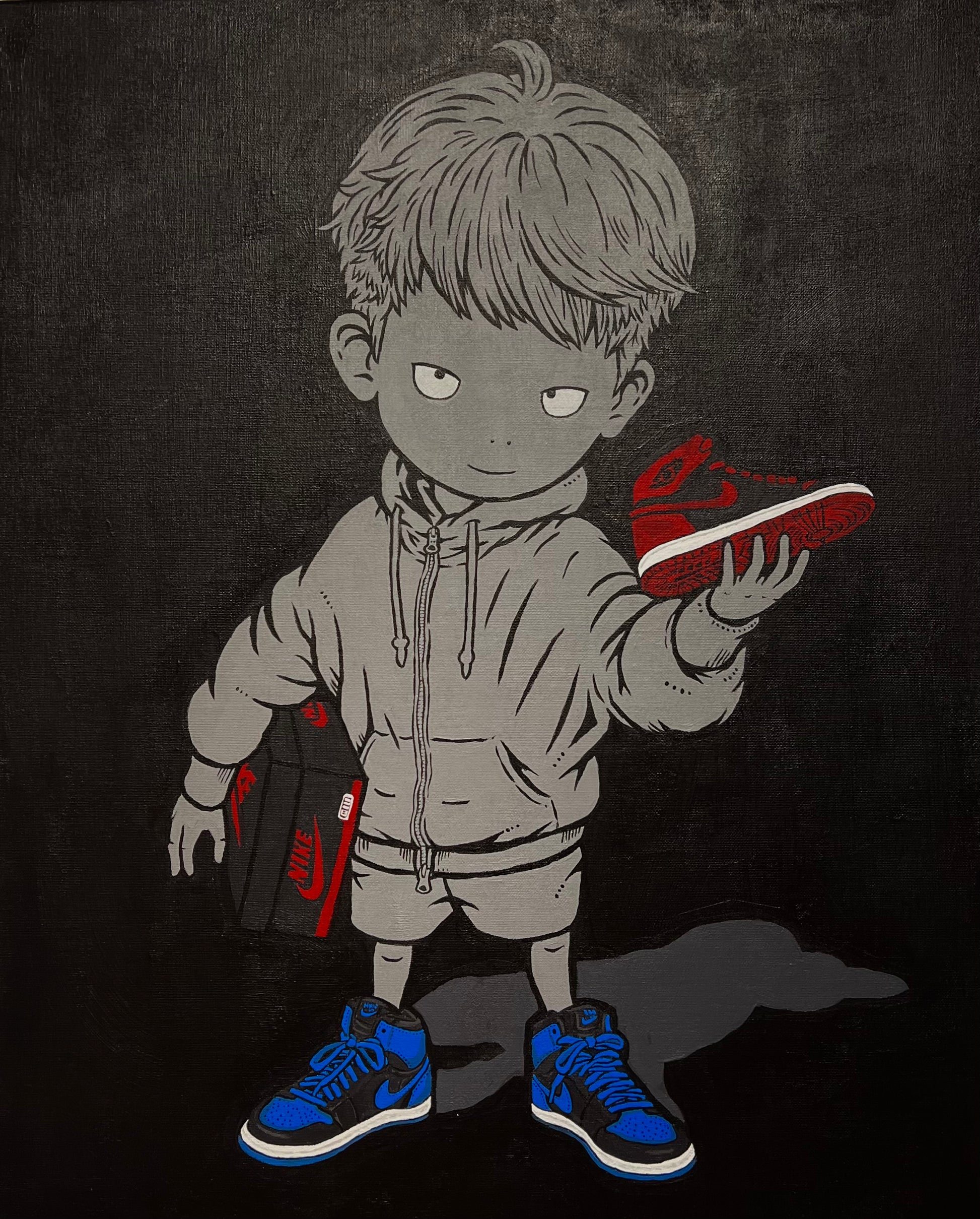The “Tosen shonen(当選少年)” series expresses the joy of winning in the sneaker lottery. I express it so that even if it is rare, it will be a complicated feeling.