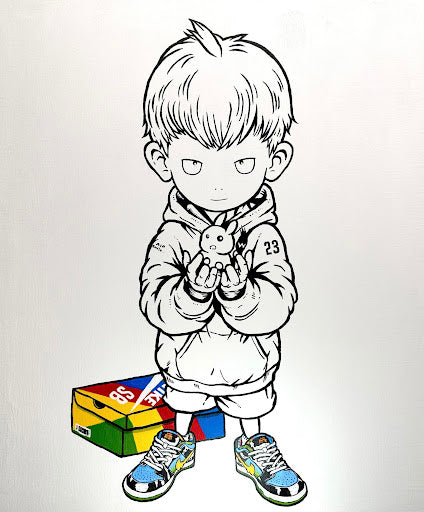 The “Tosen shonen(当選少年)” series expresses the joy of winning in the sneaker lottery. I express it so that even if it is rare, it will be a complicated feeling.