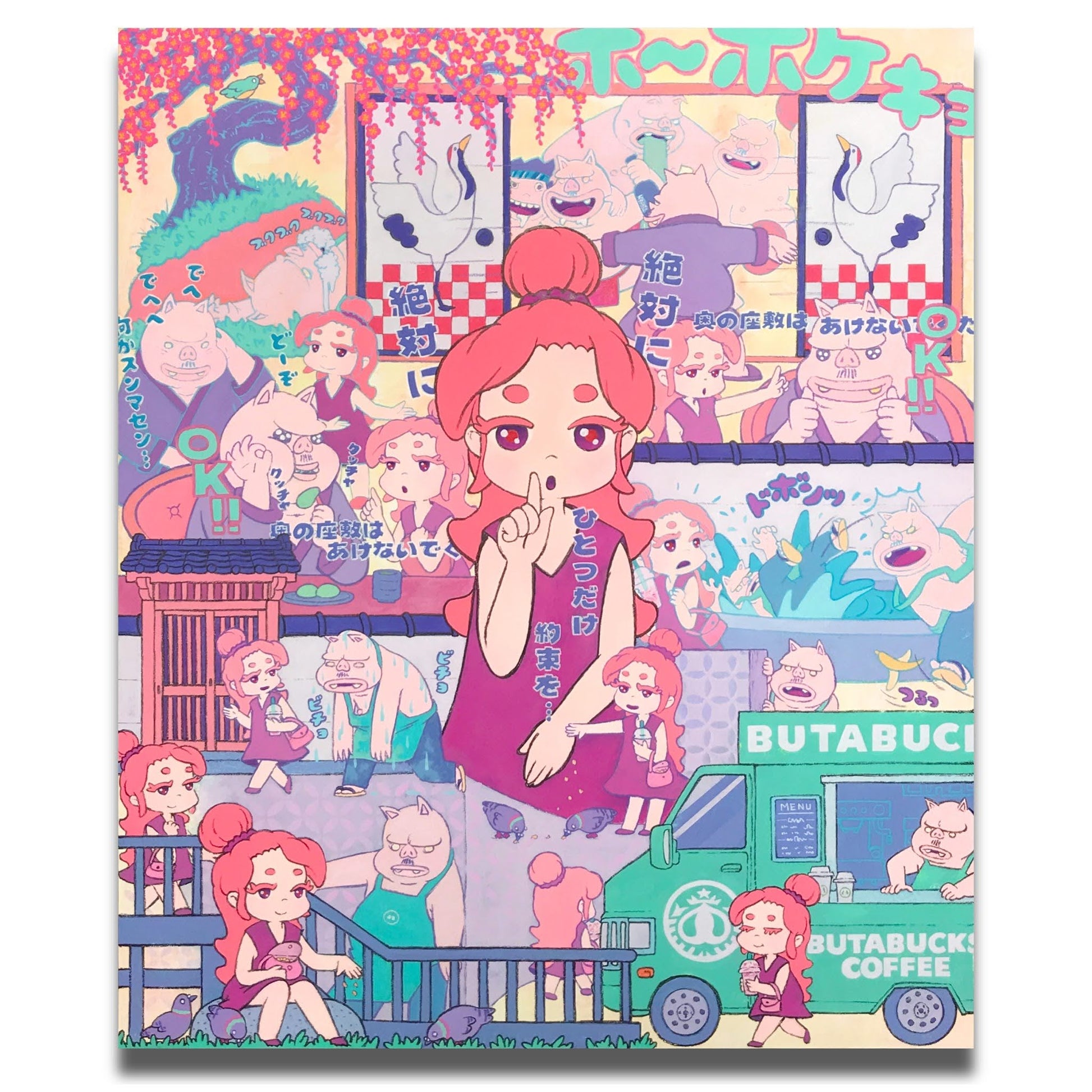 I create paintings that reinterpret Japanese folktales from a unique perspective, adding a playful touch that resonates with contemporary sensibilities.