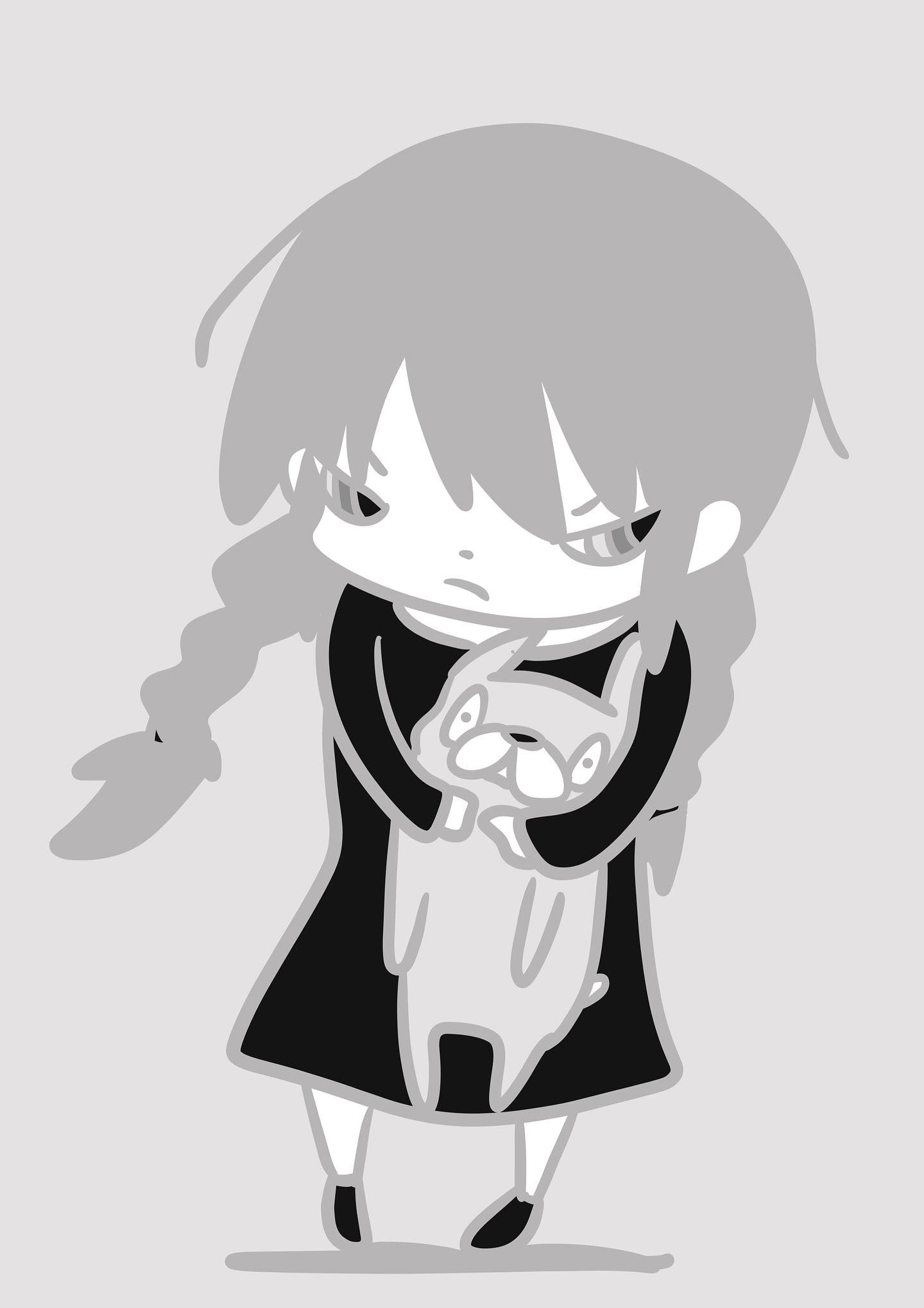 灰色の世界やキャラクターに自身の主観的なものを投影し可視化しています