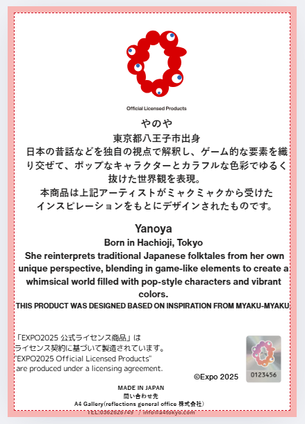 - 此作品為以MYAKU-MYAKU・萬博為主題的藝術作品,屬於**Expo 2025 Osaka, Kansai, Japan Official Licensed product**。根據作品不同,在萬博閉幕日2025年10月13日之前,可能會在展覽活動中展出。